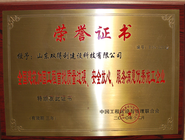 - 公司先后成為全國(guó)第一屆《工程抗震與加固改造》理事會(huì)理事、中國(guó)《工程加固》行業(yè)協(xié)會(huì)會(huì)員;被評(píng)為"全國(guó)建設(shè)系統(tǒng)重合同、守信譽(yù)、信得過(guò)"單位、"全國(guó)建筑加固工程質(zhì)量過(guò)硬、安全放心、服務(wù)滿意優(yōu)秀施工單位"及"全國(guó)政府放心、用戶滿意先進(jìn)單位"、"全國(guó)建設(shè)信用AAA級(jí)誠(chéng)信企業(yè)"及 "省級(jí)守合同重信用"企業(yè),技術(shù)水平始終保持行業(yè)領(lǐng)先地位。